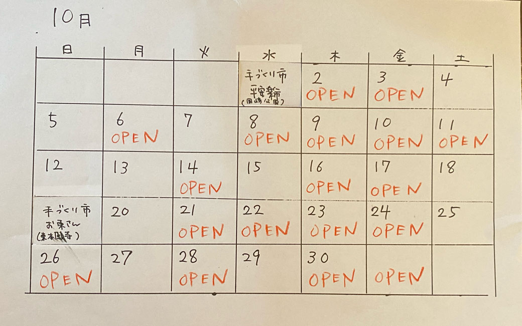 店舗ALFREDの営業日は毎週木・金曜日13:00~18:00+@