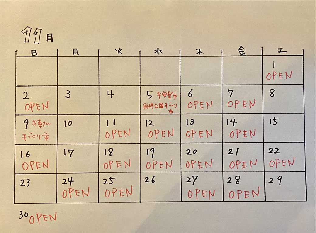 時折営業日の変更がありますご注意ください
